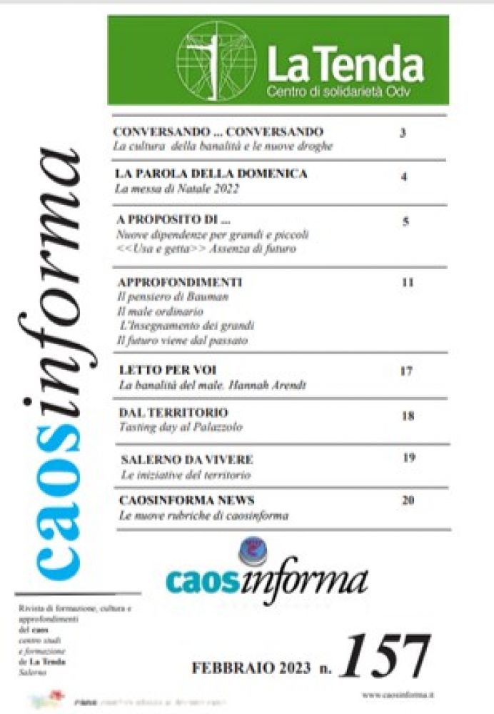 "La modernità liquida", per dirla con le parole di Z. Bauman, è "la convinzione che il cambiamento è l'unica cosa permanente e che l'incertezza è l'unica certezza". Intanto le "nuove droghe" coinvolgono le vite di milioni di persone che sono difficilmente riconoscibili, in quanto dedite a stili di vita sempre più diffusi.E' a queste nuove droghe che, detto per inciso, non sostituiscono quelle "vecchie", dedichiamo uno spazio di approfondimento nelle rubriche del nostro caosinforma.