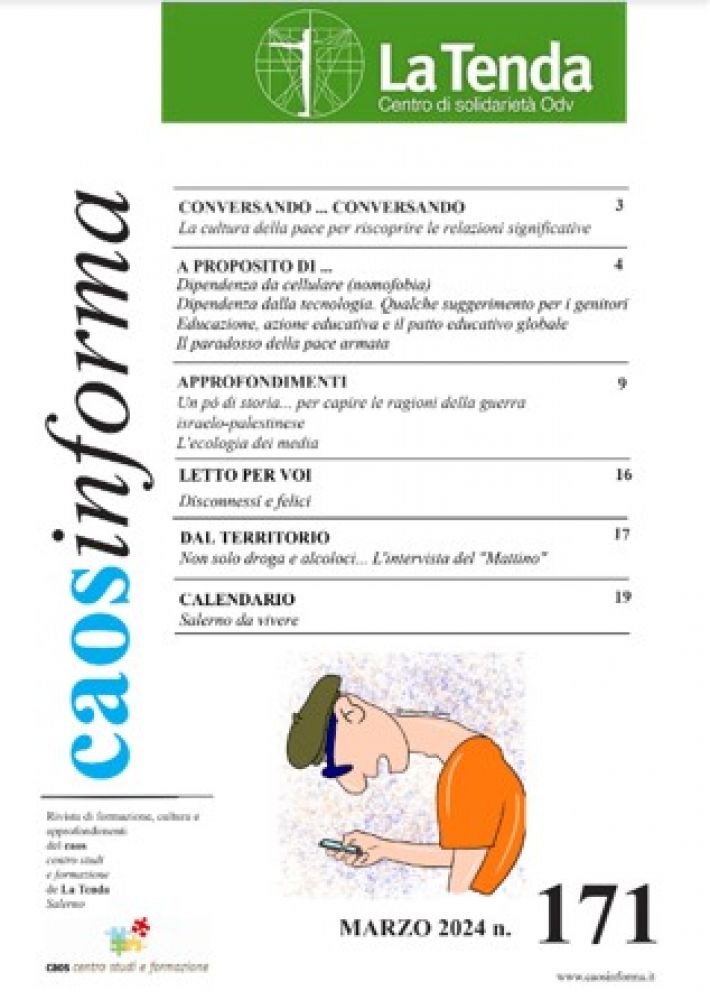 Nel numero 171 di Caosinforma, proseguiamo nell’analisi delle nuove dipendenze che influenzano il comportamento dei ragazzi odierni. In particolare, riflettiamo sulla dipendenza dalla tecnologia e su una caratteristica comune a queste nuove dipendenze: il tentativo di colmare un vuoto causato dalla sostanziale mancanza di un’offerta educativa attraente e credibile.