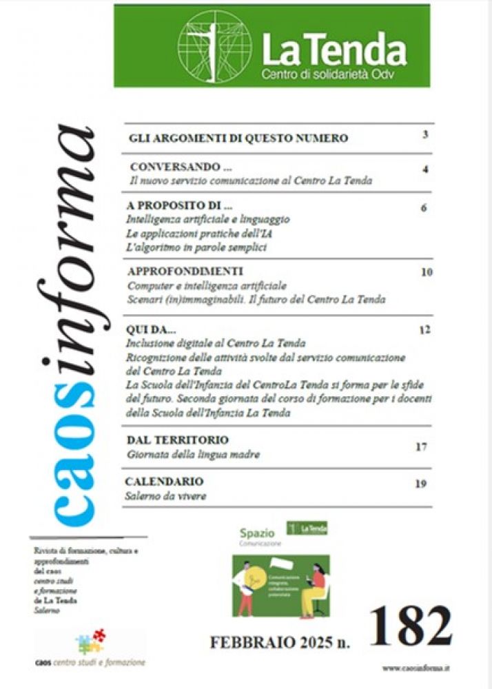 Il numero 182 di caosinforma mira a informare e ispirare i lettori, offrendo contenuti che spaziano dalle novità del Centro La Tenda agli approfondimenti.