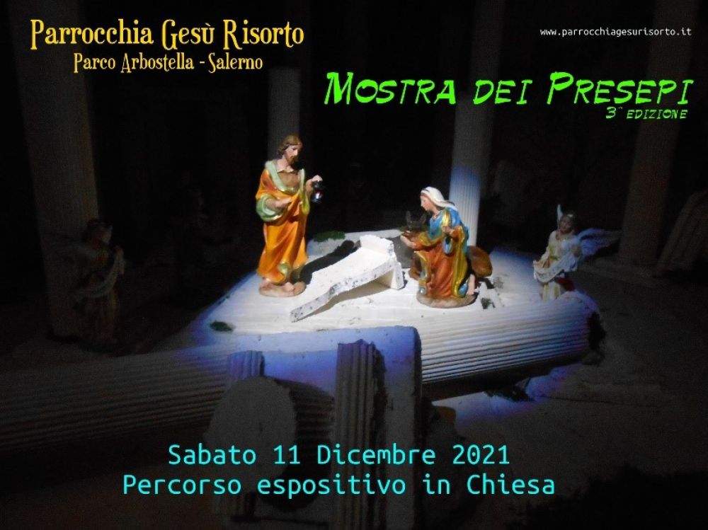 A partire da Sabato 11 Dicembre 2021 e per tutto il periodo natalizio, sarà possibile visitare la Mostra dei Presepi, giunta alla terza edizione, presso la Parrocchia Gesù Risorto sita in Salerno presso il Parco Arbostella. Anche l’Associazione La Tenda sarà presente con l’esposizione dei propri presepi della tradizione napoletana del settecento.