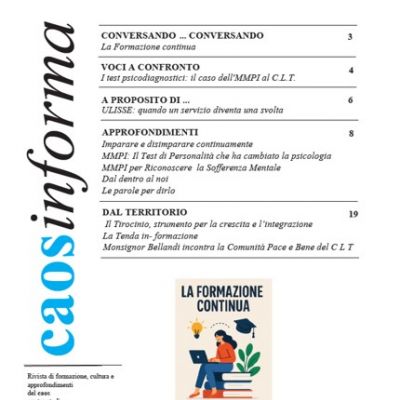 Dedicato alla memoria, alla cura e alle pratiche espressive che trasformano il dolore in possibilità, il numeo 196 di caosinforma introduce i laboratori e percorsi formativi del Centro La Tenda, con un focus sulla formazione all’uso dell’MMPI‑2 e sull’integrazione tra assessment clinico e arteterapia.