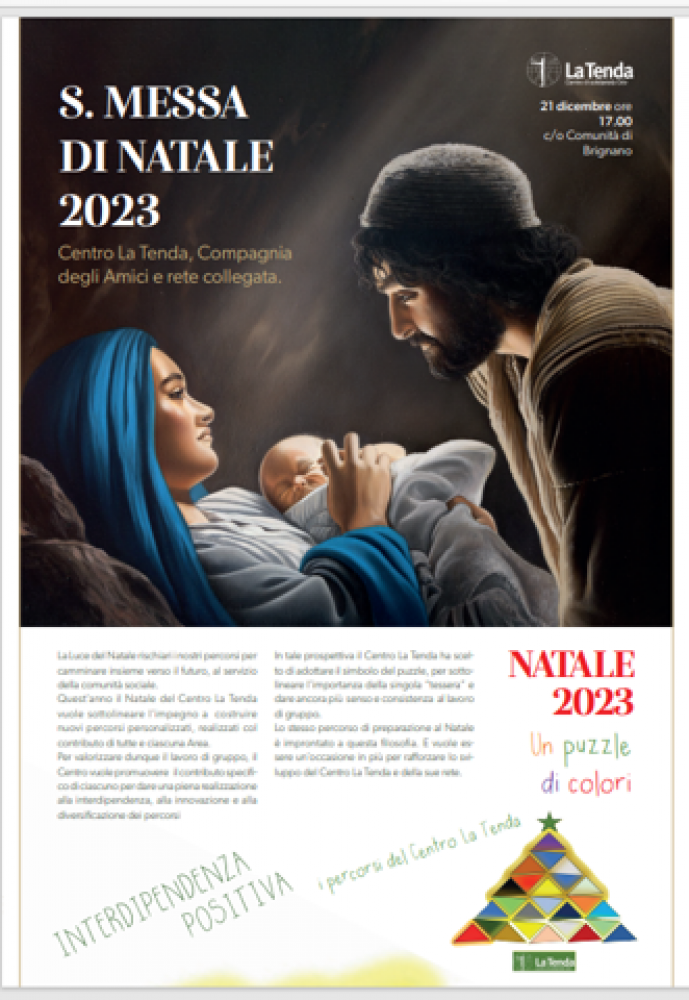 Sarà celebrata il 21 dicembre ore 17.00 c/o Comunità di Brignano, la Santa Messa di Natale del Centro La Tenda e della rete collegata.